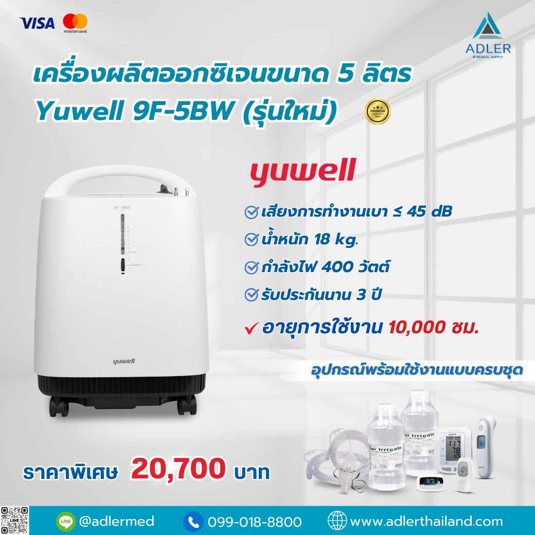 5 liter Oxygen Concentrator Yuwell model 9F-5BW, 3 year warranty from Thai center.